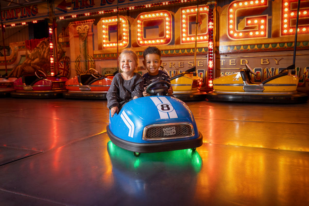 ROOM FOR TWO: Designed for double the fun, this bumper car accommodates two riders, allowing kids aged 18 months+ to share exciting adventures with friends and family