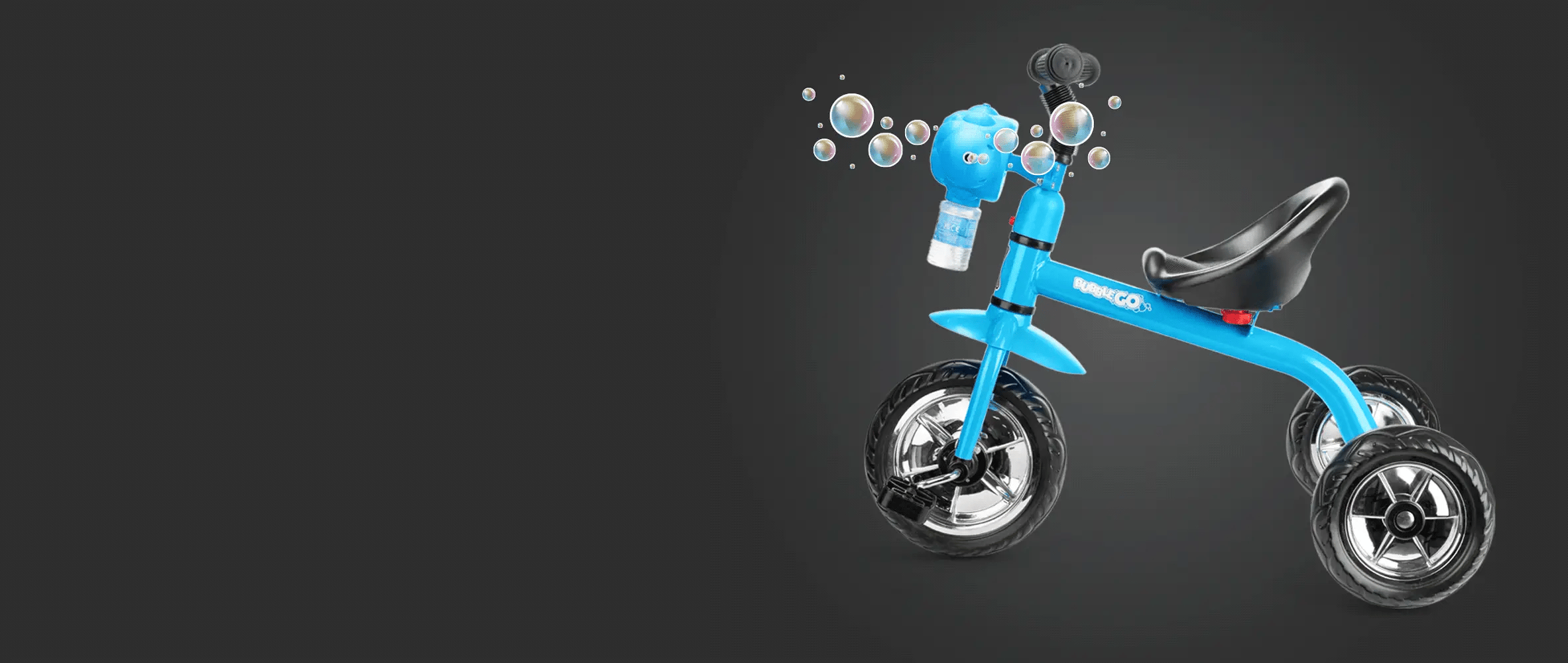 BUBBLE GO TRIKE: The Xootz Bubble Go Trike lets kids ride in style, releasing bubbles as they cruise, providing endless fun and excitement for little adventurers aged 3 and up