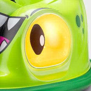 LED LIGHTS & RUBBER BUMPER: Colour-changing LEDs and light-up eyes add excitement, while the rubber bumper protects walls and furniture for worry-free fun