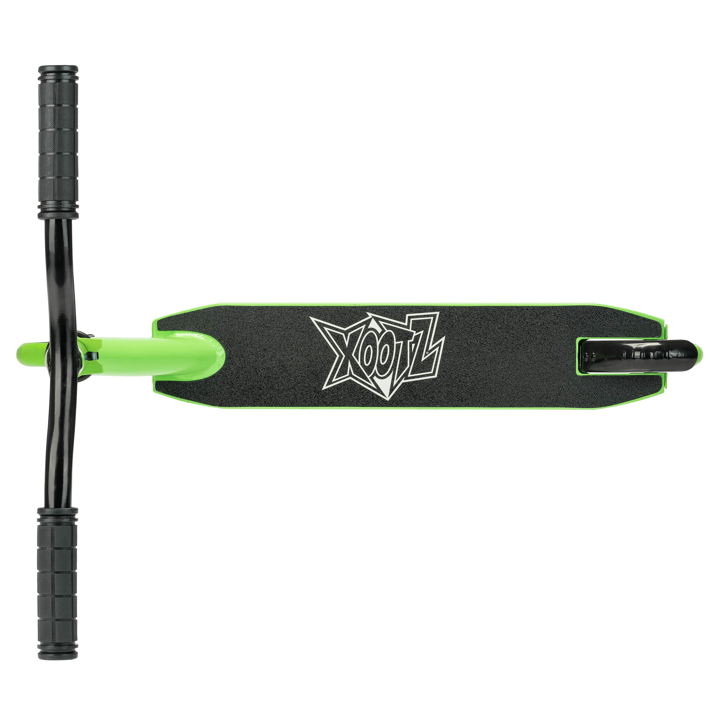 TOUGH STEEL Y-BAR WITH RUBBER GRIPS: Built for action! The solid, non-collapsible Y-bar withstands hard landings, while rubber grips and a 360° spin handlebar boost flexibility for tricks