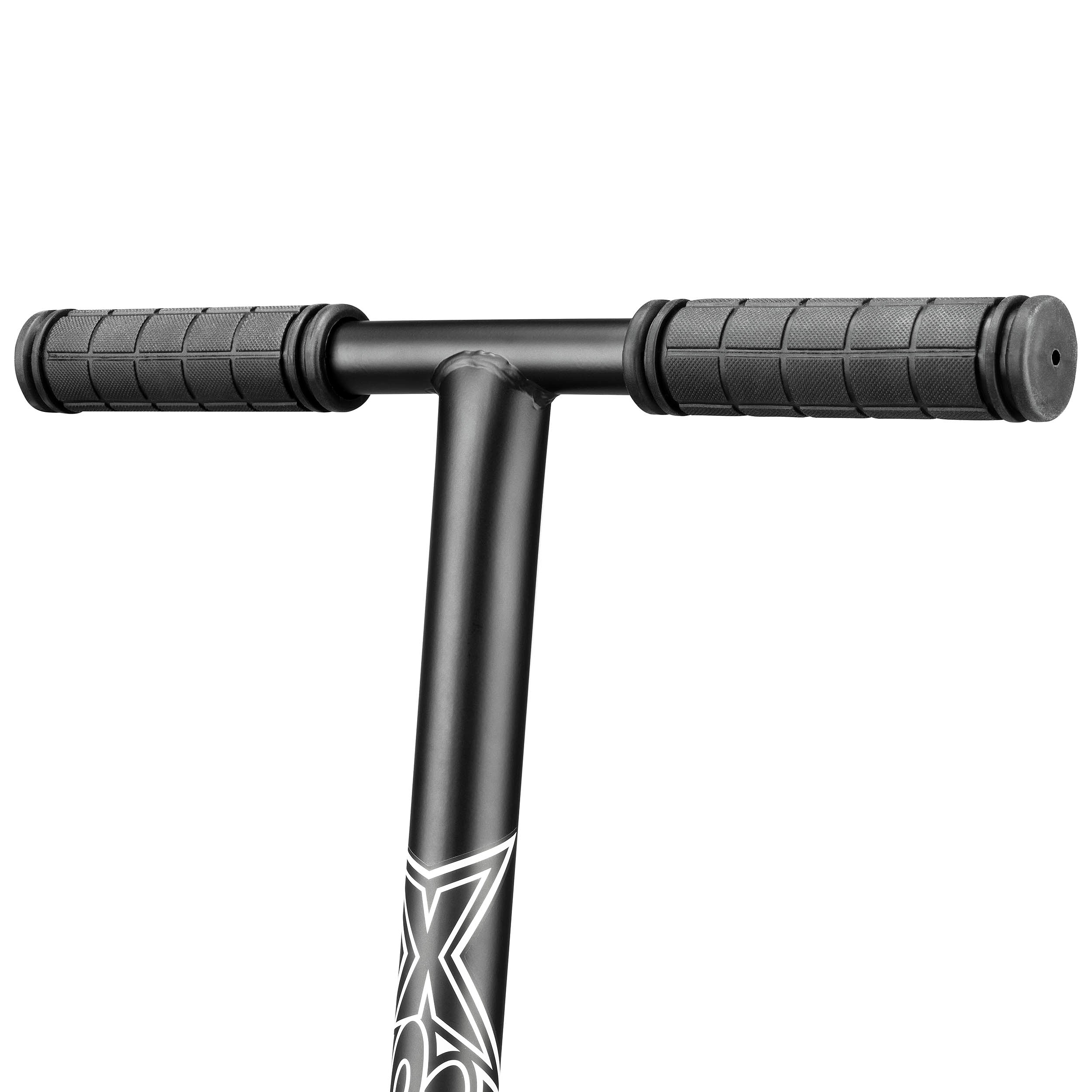 TOUGH STEEL T-BAR WITH RUBBER GRIPS: Built for action! The solid, non-collapsible T-bar withstands hard landings, while rubber grips and a 360° spin handlebar boost flexibility for tricks