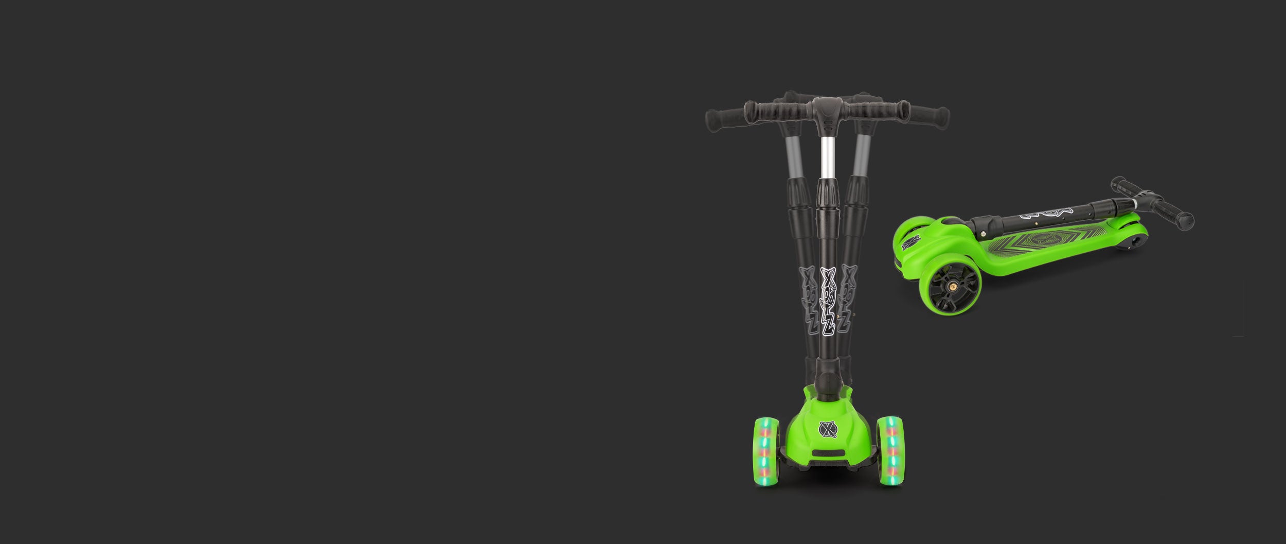 QUICK RELEASE FOLDING SYSTEM: Lightweight and portable, the Xootz Scout Tri-Scooter features a collapsible stem for easy storage and transportation to the park or playdate - H18cm x W26cm x L56cm