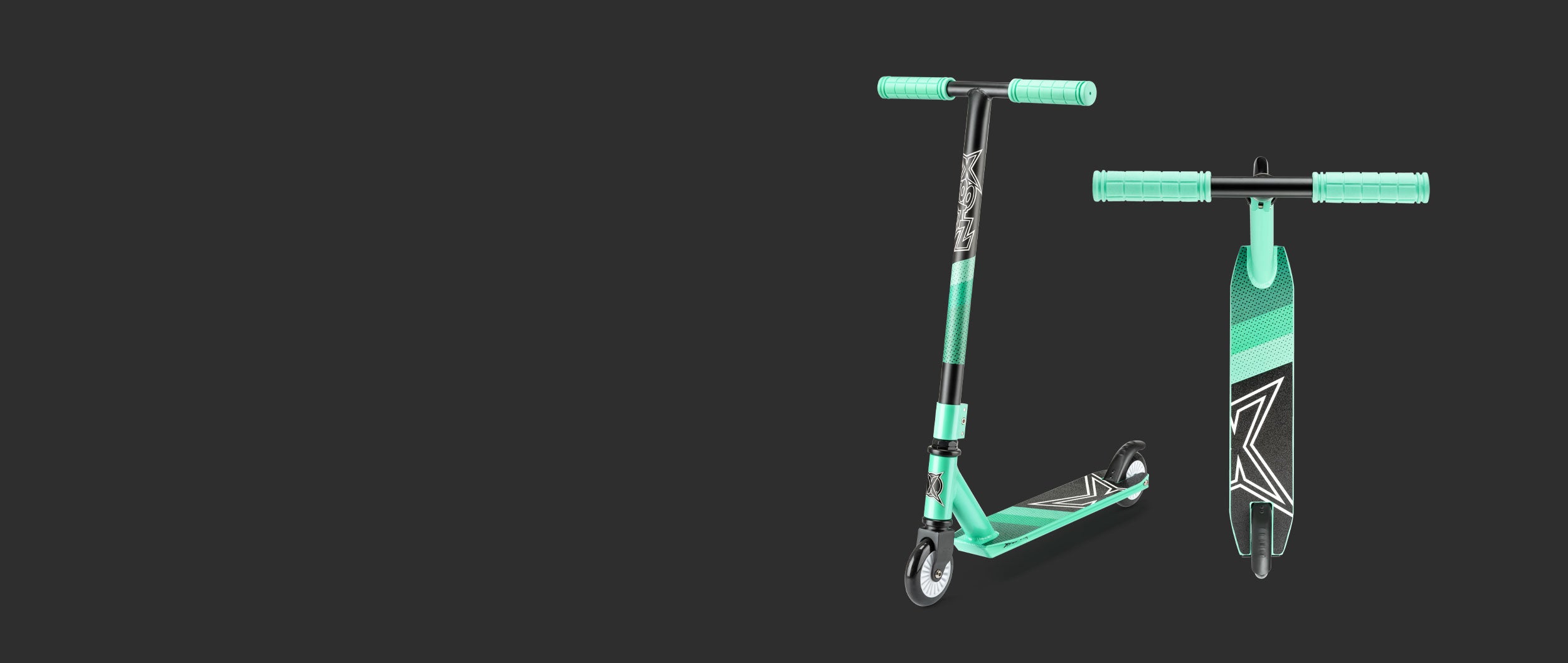 TOUGH STEEL T-BAR WITH RUBBER GRIPS: Built for action! The solid, non-collapsible T-bar withstands hard landings, while rubber grips and a 360° spin handlebar boost flexibility for tricks