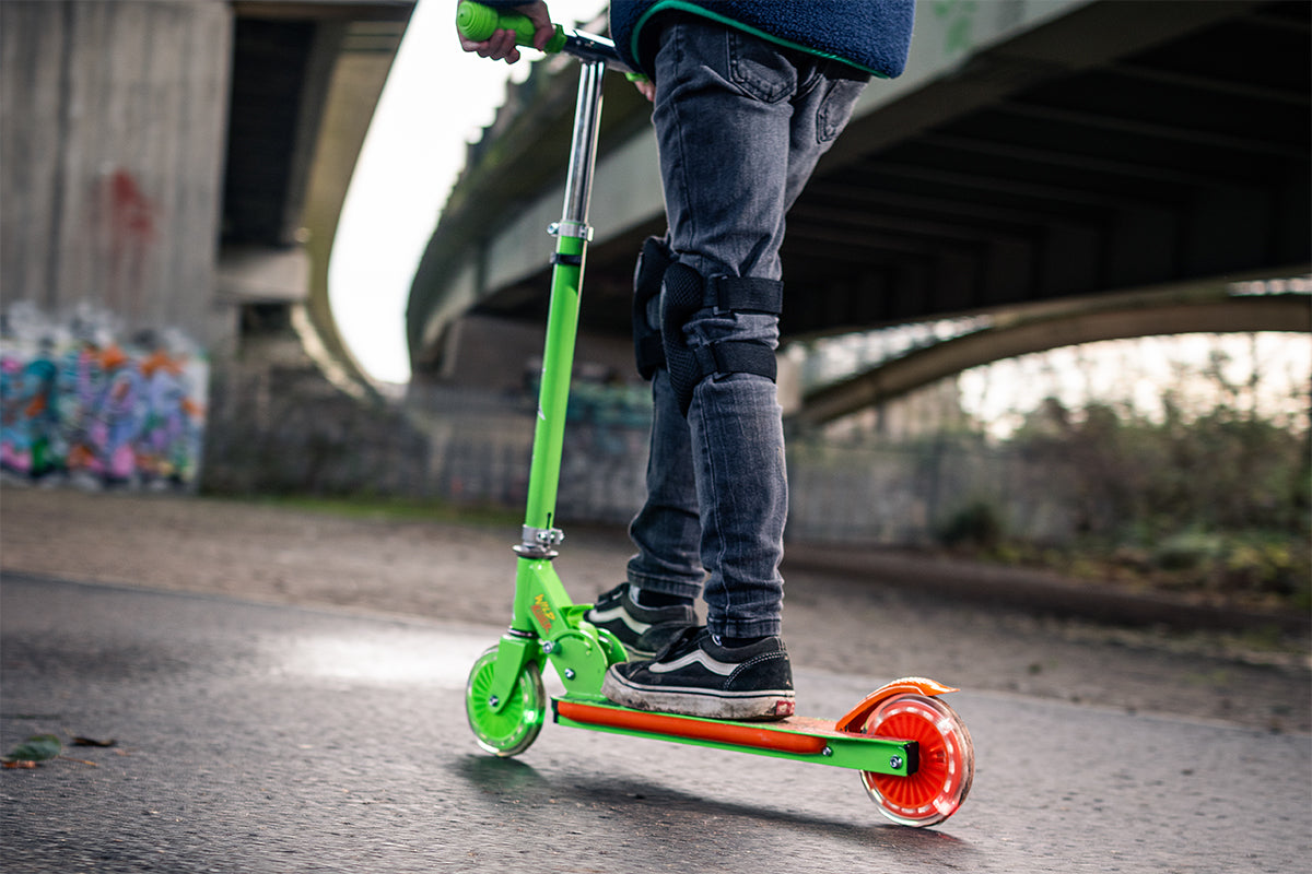 SAFETY FIRST: The printed grip tape on the deck ensures a secure foothold, reducing the risk of slips, while the rear brake provides reliable stopping power, allowing the rider to stop safely whenever needed