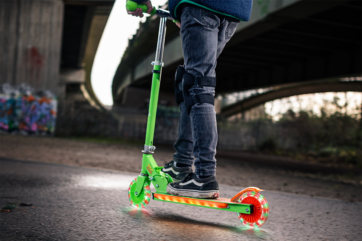LED LIGHT UP ALUMINIUM DECK: Add some flair to your ride with the LED light-up aluminium deck. As you scoot, the deck lights up, creating a captivating visual effect. The LED lights can be easily recharged via USB, ensuring they're always ready to shine.