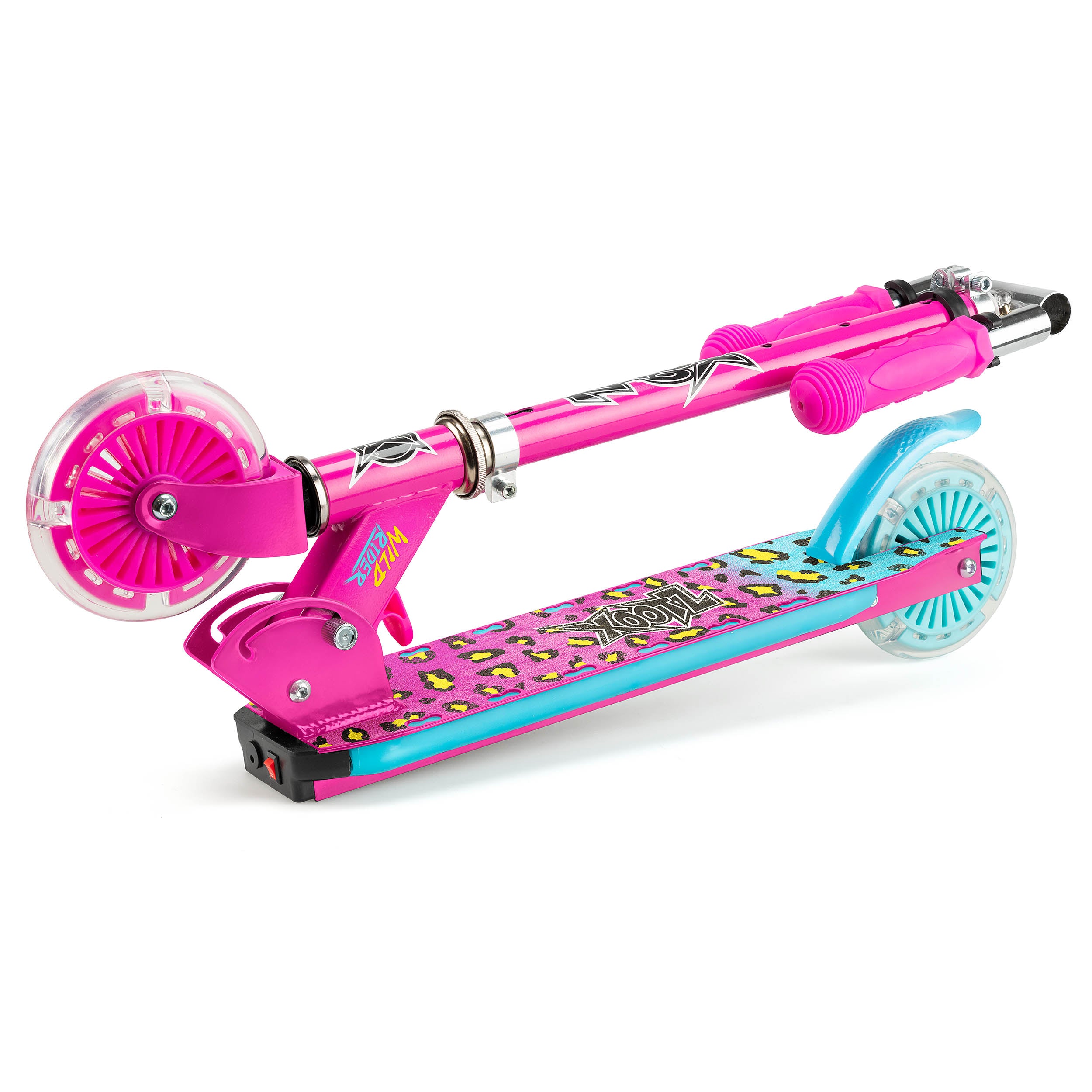WILD RIDER PINK FOLDING TIGER SCOOTER: For those who crave adventure, this unique scooter is ideal for days out, thanks to its folding design. It easily fits in the boot of a car or can be carried on public transport, making it perfect for on-the-go fun.