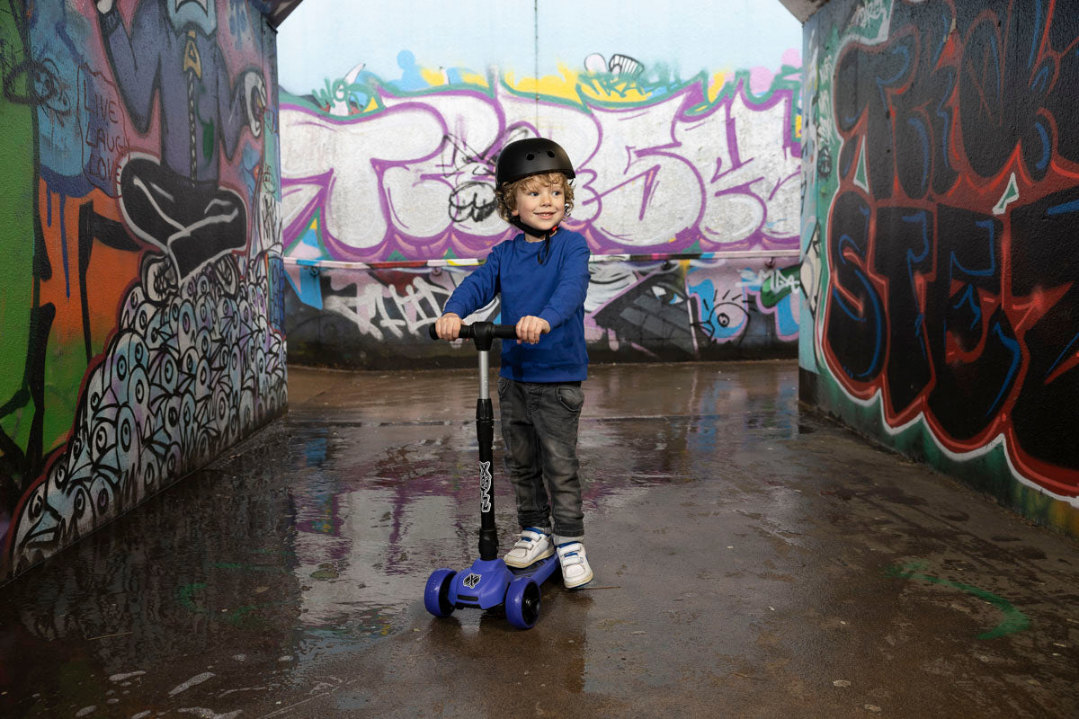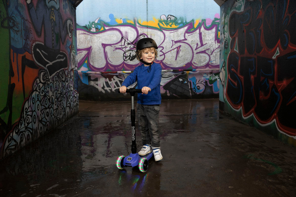 QUICK RELEASE FOLDING SYSTEM: Lightweight and portable, the Xootz Scout Tri-Scooter features a collapsible stem for easy storage and transportation to the park or playdate - H18cm x W26cm x L56cm